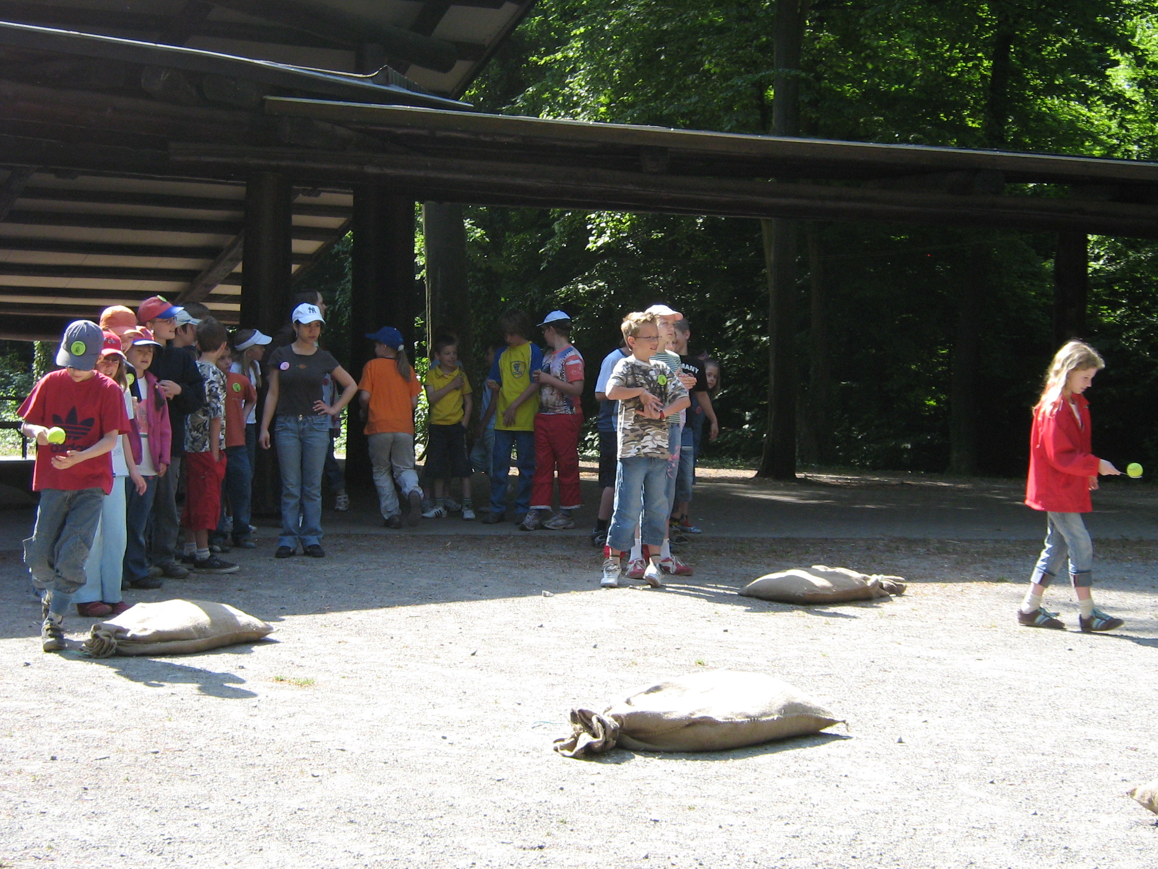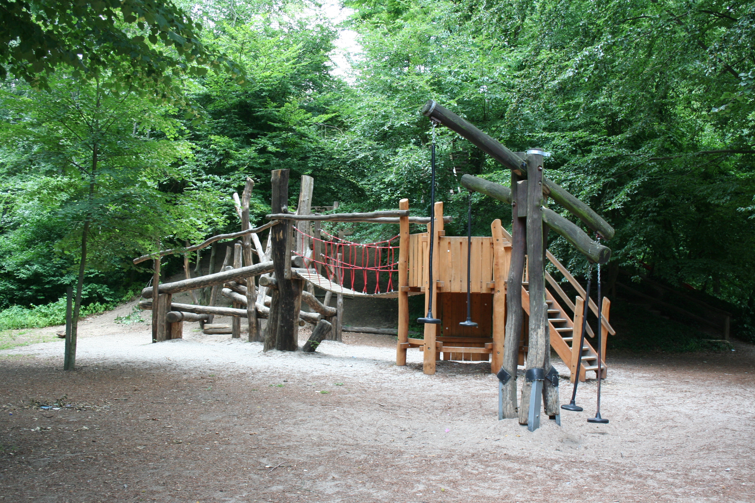 Direkt gegenüber der Waldfesthütte befindet sich ein Spielplatz mit vielen schönen Spielgeräten. Die vielen Bäume spenden imSommer genügend Schatten.