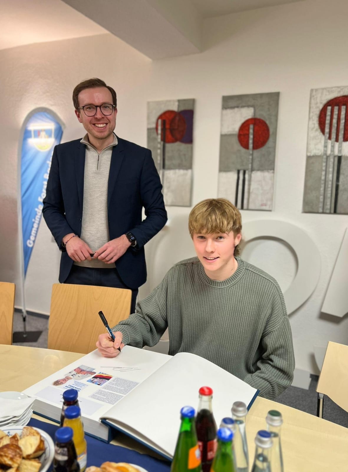 Wir haben einen Weltmeister! Auf dem Siegerpodest der U17-Weltmeisterschaft im Handball, die in Marokko ausgetragen wurde, stand tatsächlich ein Forster. Levin Droll ist ein Gewächs der TV Forst Handballabteilung, spielt inzwischen aber sehr erfolgreich bei den Rhein-Neckar Löwen. Als Stammspieler in der B-und A-Jugend hat er sich für die Auswahl des Deutschen Handballbundes empfohlen und durfte mit zur WM nach Marokko, die im Finale gegen Ägypten mit 44:43 gewonnen wurde. Die Gemeinde Forst ist stolz auf den Nachwuchssportler und hat ihn mit einem Eintrag ins Goldene Buch geehrt.