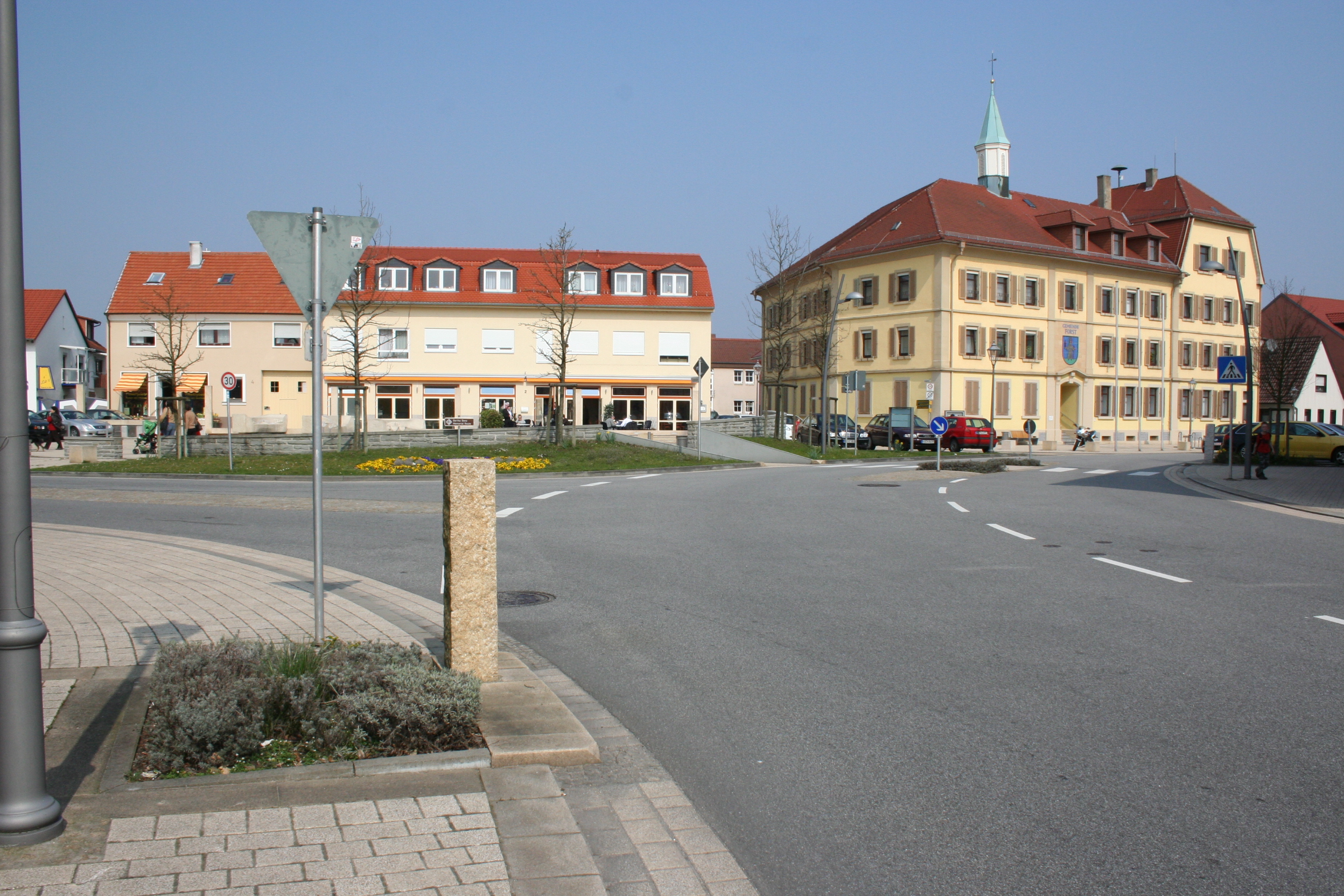 2004 konnte der neu gestaltete Ortskern der Bevölkerung übergeben werden. Die Strukturierung des Straßenraumes mit Granitstelen und Pflanzbeeten im mediterranen Stil verlangsamen automatisch die Geschwindigkeit der Fahrzeuge. Die Gestaltung des Kirchplatzes knüpft an die Platz- und Wegegestaltung im Bereich des Seniorenheimes im Kirchengarten an und wirkt besonders großzügig, da sich die Katholische Kirchengemeinde entschlossen hat, den Kirchenvorplatz mit in die Gesamtplanung einzubringen. So konnte ein einheitlich gestalteter fast 700 qm großer Platz entstehen, der mit Sitzbänken, Fahrradständern, Bäumen und bepflanzten Blumenkübeln ausgestattet ist. Das Herzstück des Kirchplatzes ist die knapp 100 qm große Wasseranlage. Die geringe Wassertiefe animiert Klein- und Schulkinder zum Betreten der wellenförmigen Wasserfläche, was besonders in der warmen Jahreszeit gerne genutzt wird. Die dreiteilige große Steinplastik der Forster Künstlerin Ulla Steiner bildet einen zusätzlichen Blickfang.